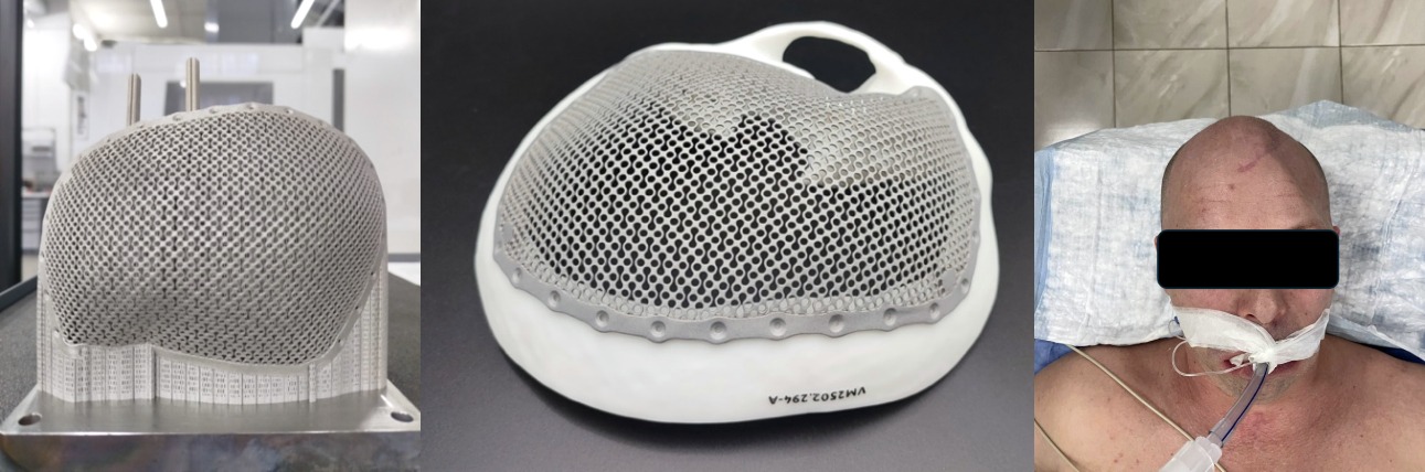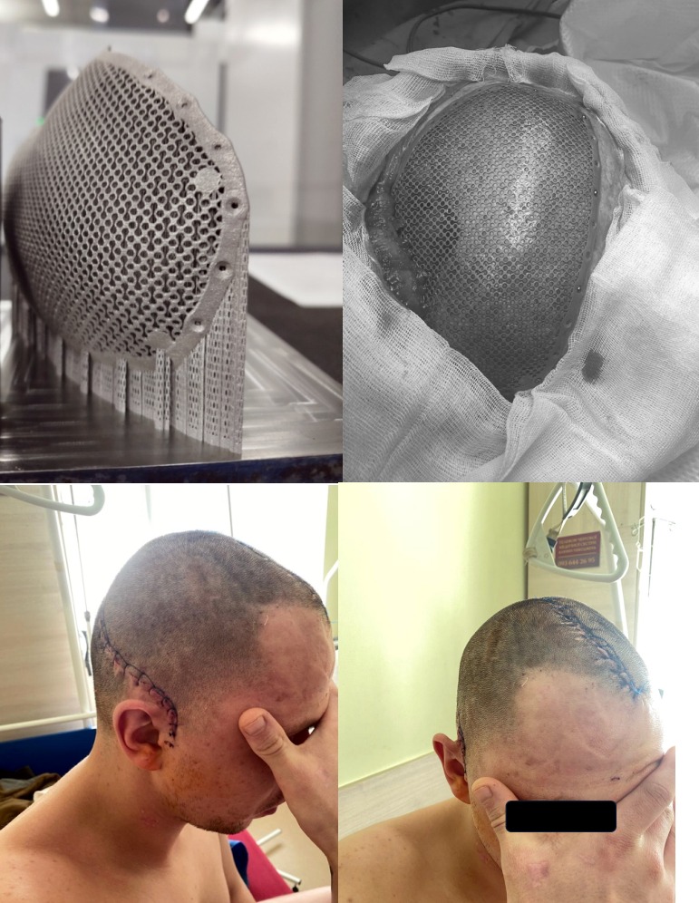- Ein anderer Patient wurde ebenfalls schwer am Kopf verletzt. Auch für ihn konnten Ingenieure und Chirurgen einen passenden Knochenersatz fertigen und erfolgreich einsetzen.